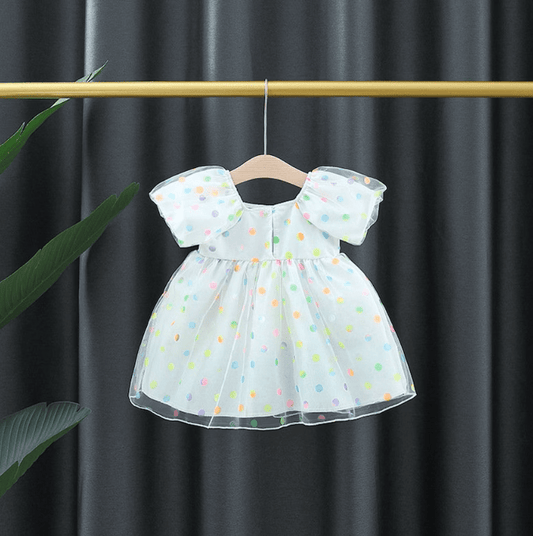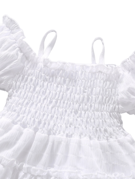 Girls Short Sleeve Off-Shoulder Shirred White Dress