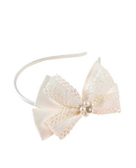 Girls Pearl Bow Decoration Hairband/Hair Hoop - Beige