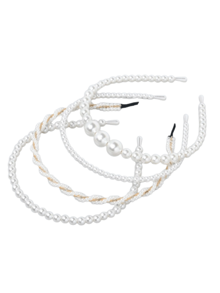 Girls 4 Piece Pearl Hairband/Hair Hoop - Pearl Beaded White
